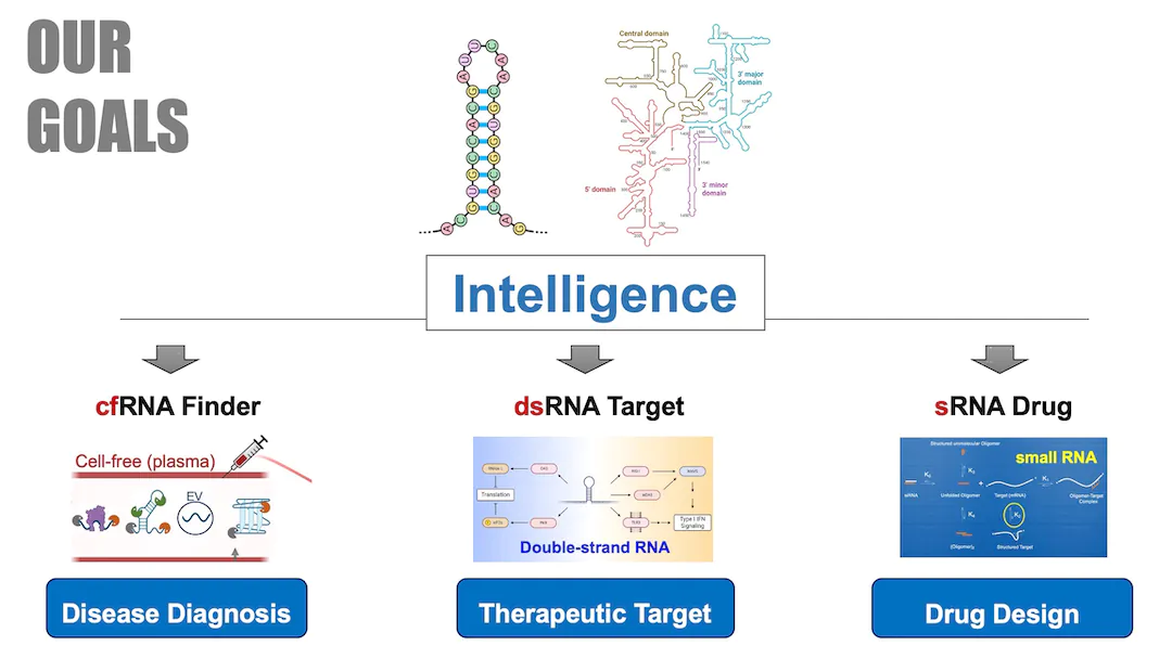 我们围绕非编码RNA发展生物信息学技术,从结构和转录后调控(例如剪接和编辑)等多个角度、多个模型探讨非编码RNA的调控作用,并探索其在复杂疾病精准诊疗上的具体实践。我们充分发挥生物信息学这一交叉学科优势,利用最新的AI技术和多组学数据,通过和【北京协和】、【北大一院】、【清华长庚】等一线医生专家的合作,在癌症、自身免疫疾病等复杂疾病上探索新的以非编码 RNA 为表现形式的靶标。在研究其免疫调控网络的同时,部分靶标可以应用为个性化精准诊疗时的生物标志物,部分靶标可以做为药物靶点通过AI进行药物设计,在复杂疾病(如癌症和自身免疫疾病)的临床诊断和治疗两个方面实现应用价值。